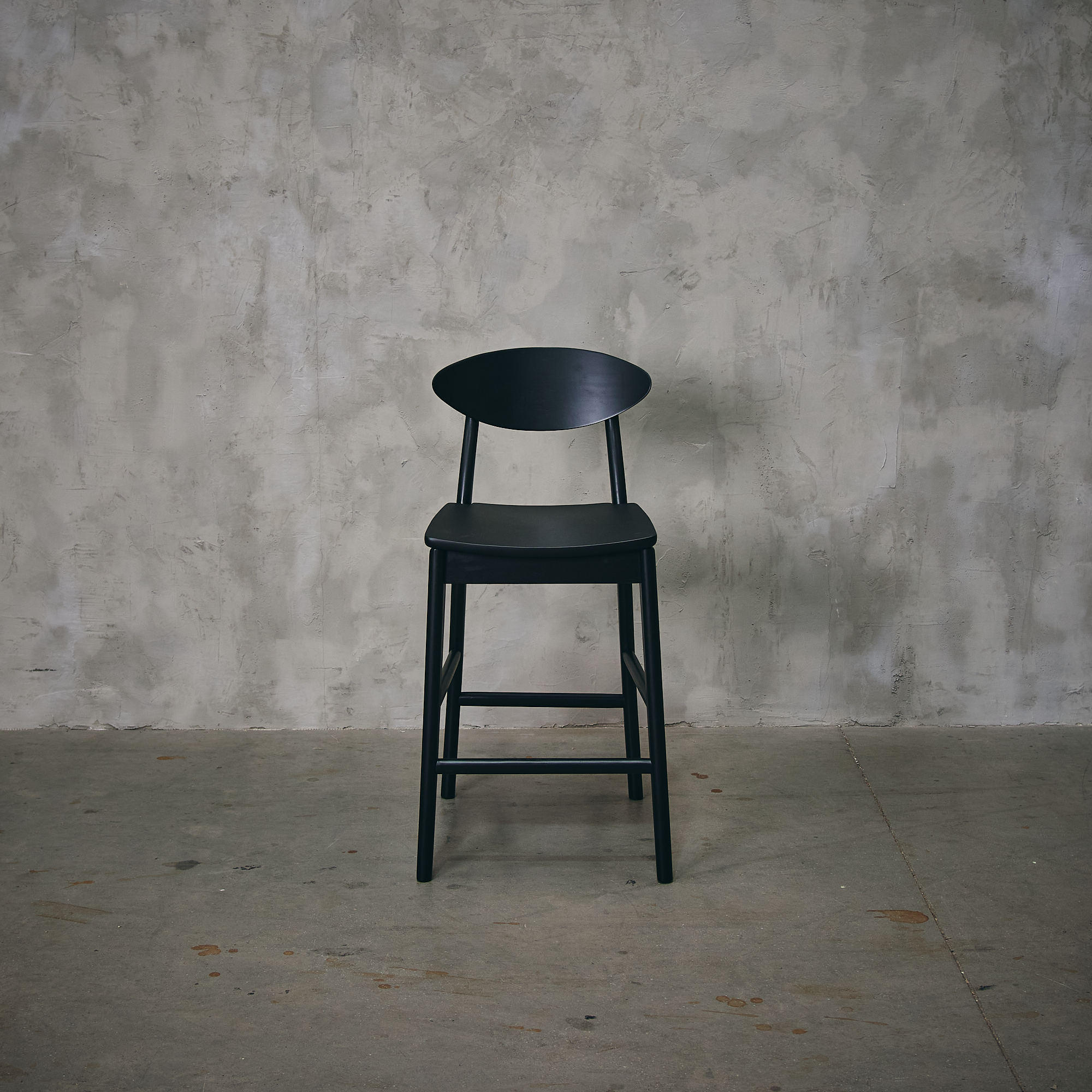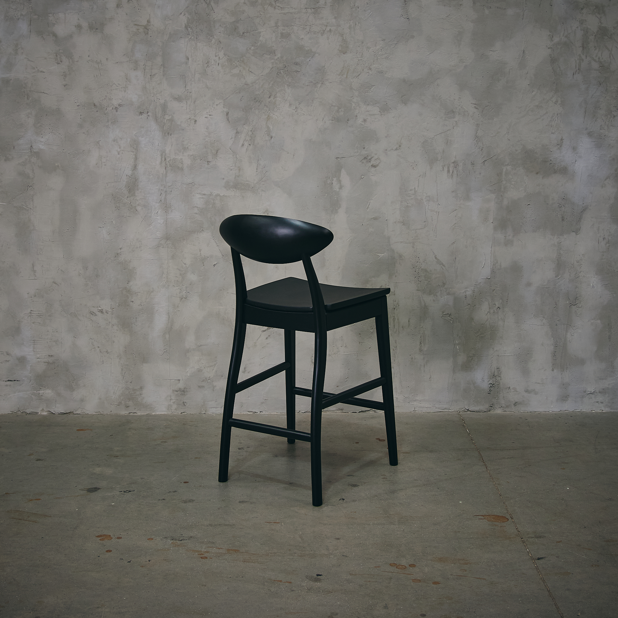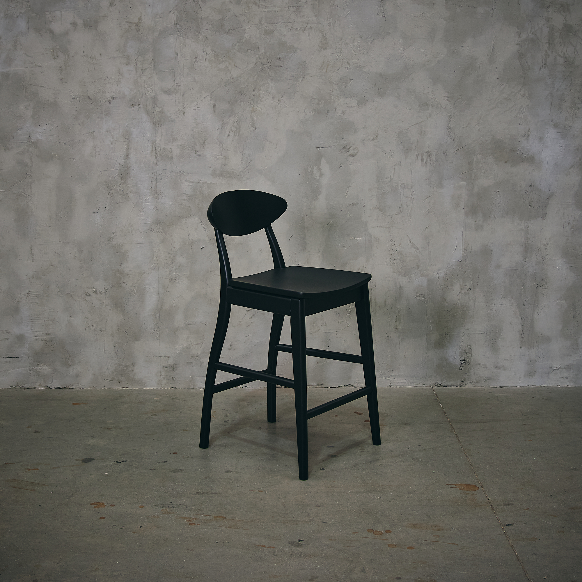Piso de madera de gomero en terminación negra.