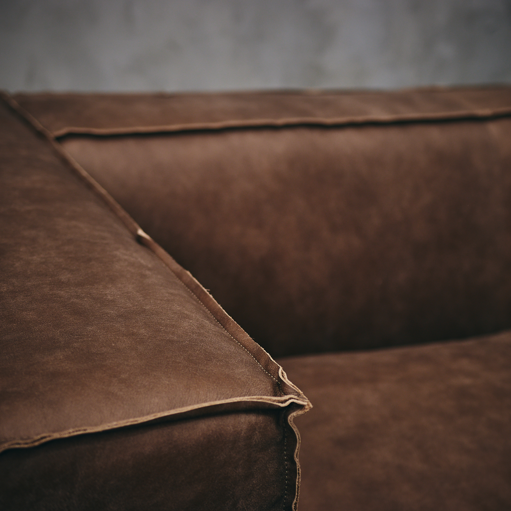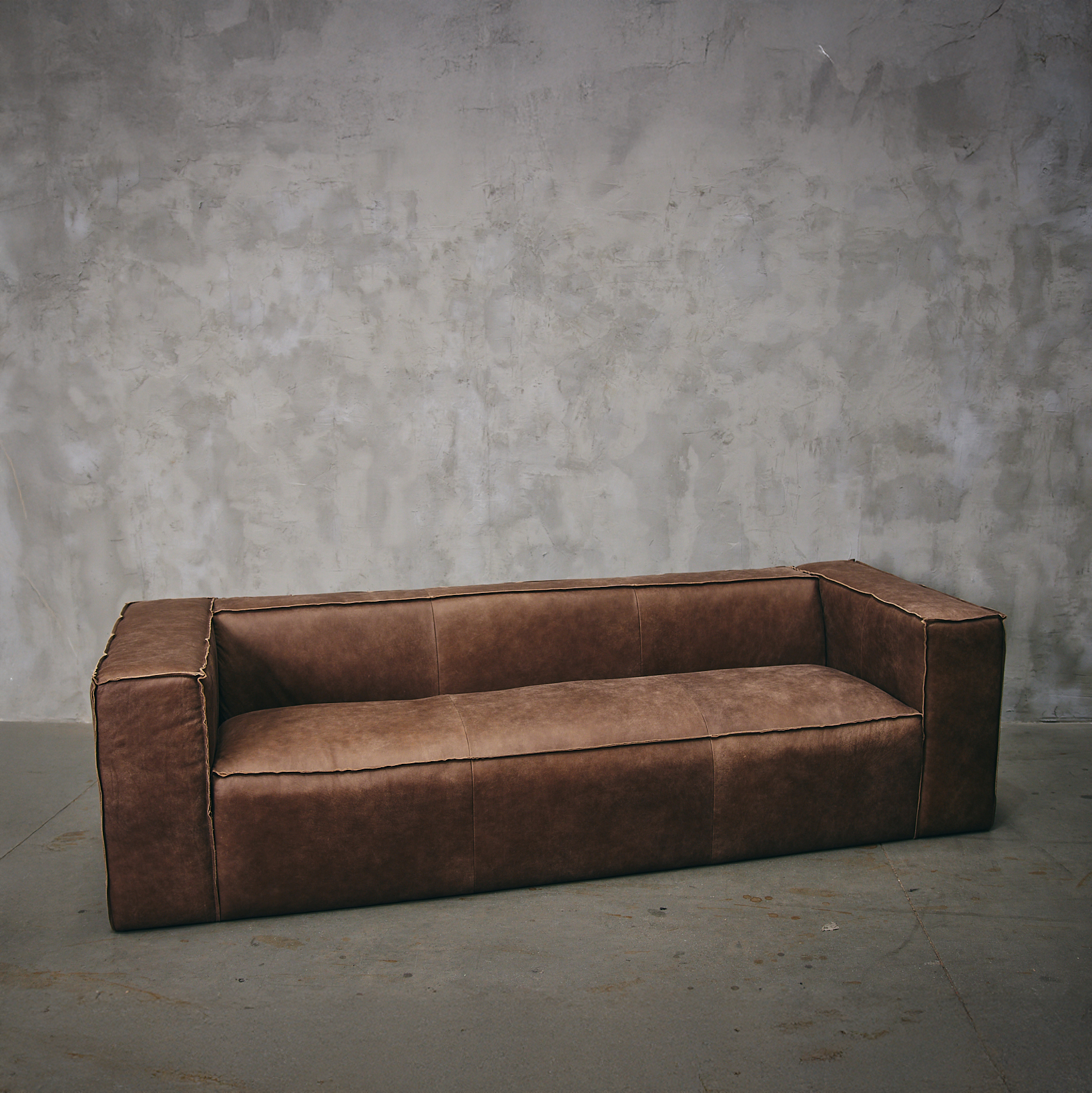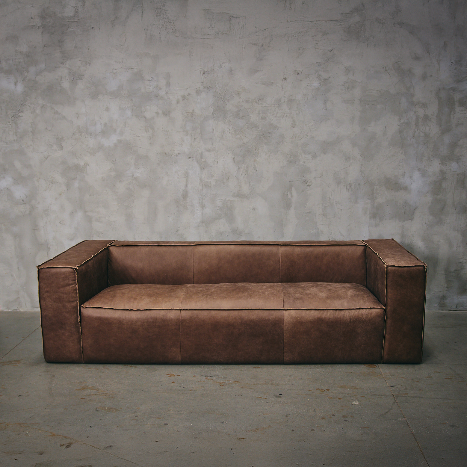 ¡Muebles con historia! Un sofá de cuero moderno, de líneas rectas y costuras visibles, su simetría entre el respaldo y los apoya brazos lo hace tan atractivo visualmente, como cómodo.