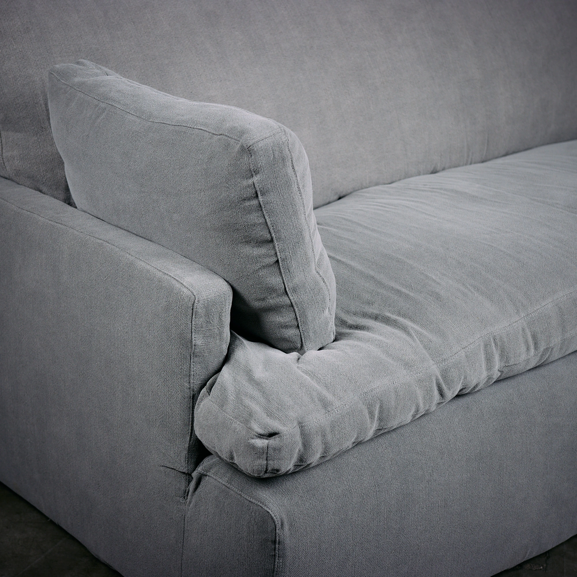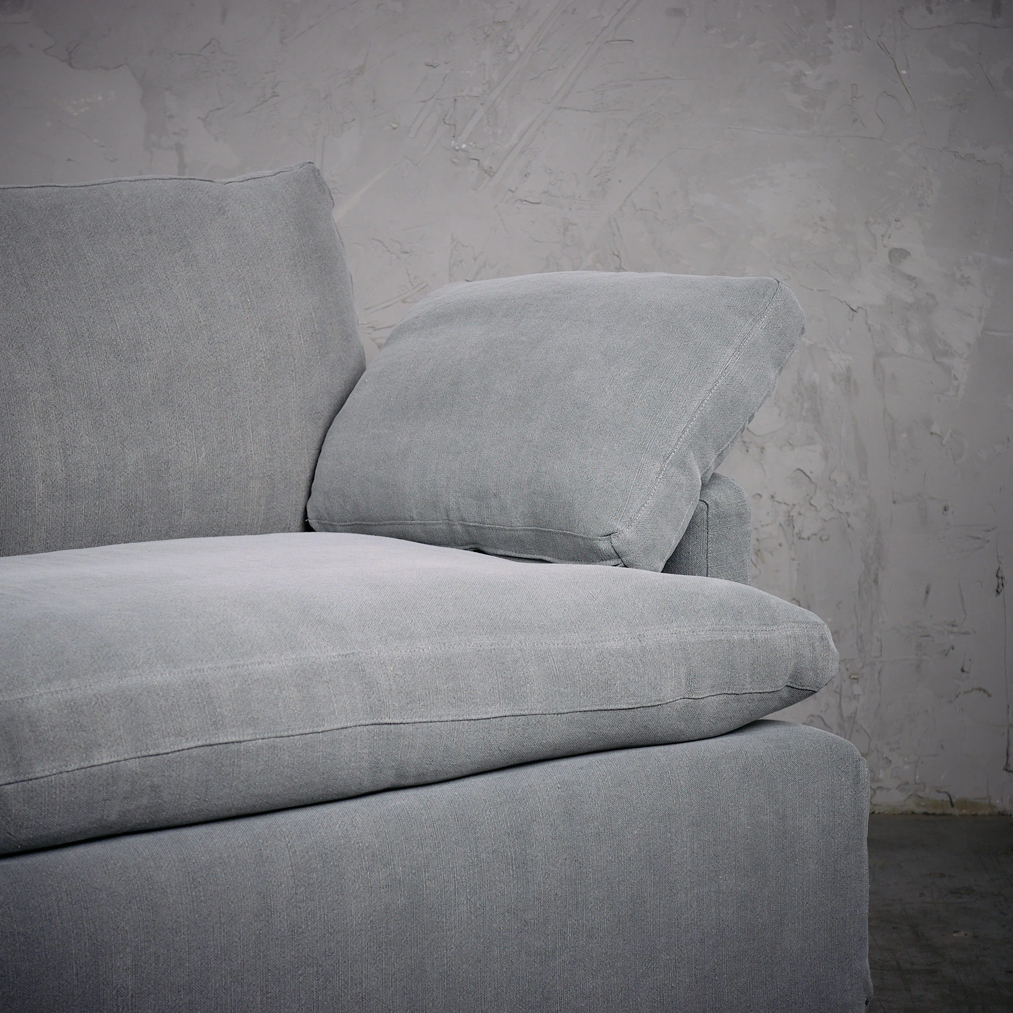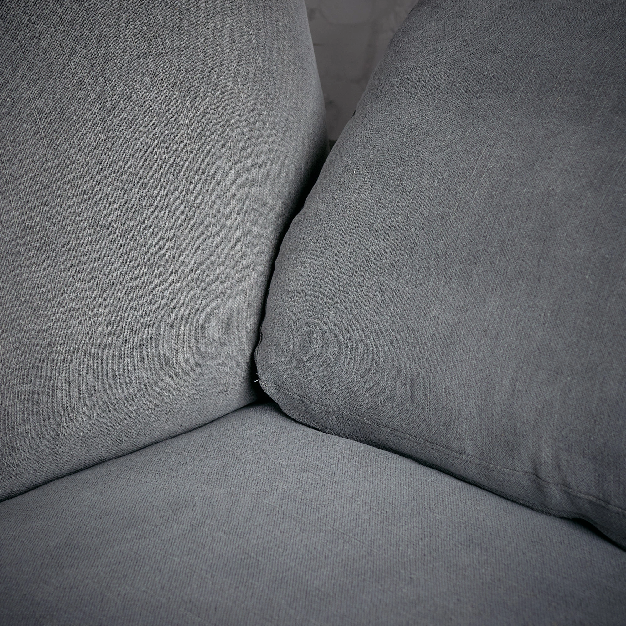 Sofá de dos cuerpos relleno de pluma y funda de velcro en color gris. 60% lino y 40% algodón